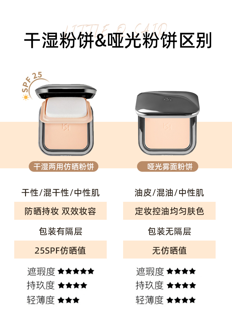 kiko这个干湿两用的粉饼,湿用的一边可以用作底妆,直接拿来当粉底液了;干用的一边可以用来定妆。