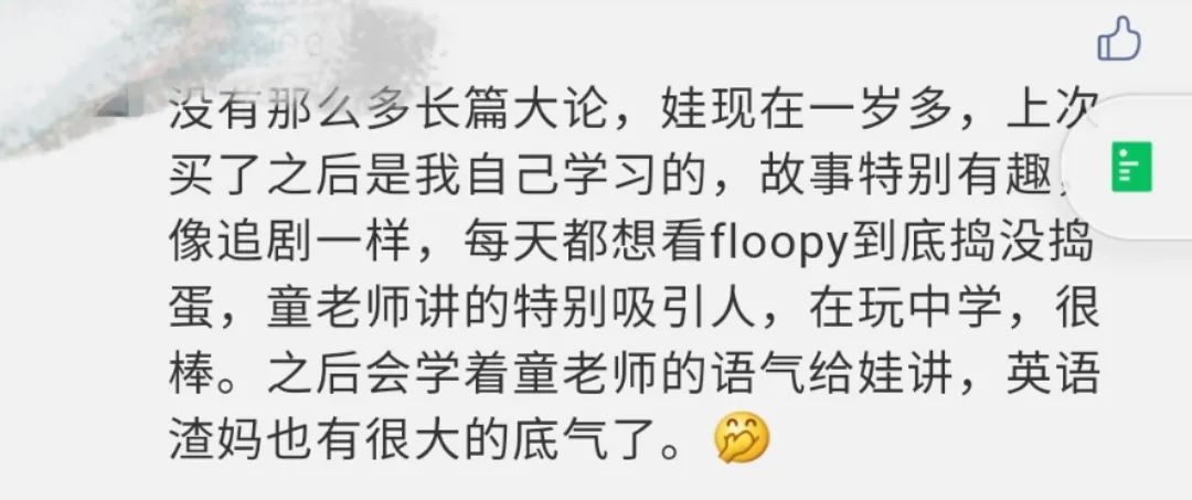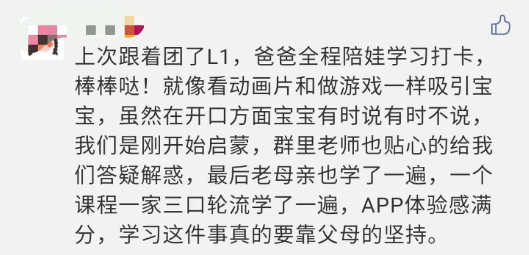 整个环节学完差不多15分钟左右,很容易坚持学!有的孩子直接把课程当做了每天最期待的“故事时间”!