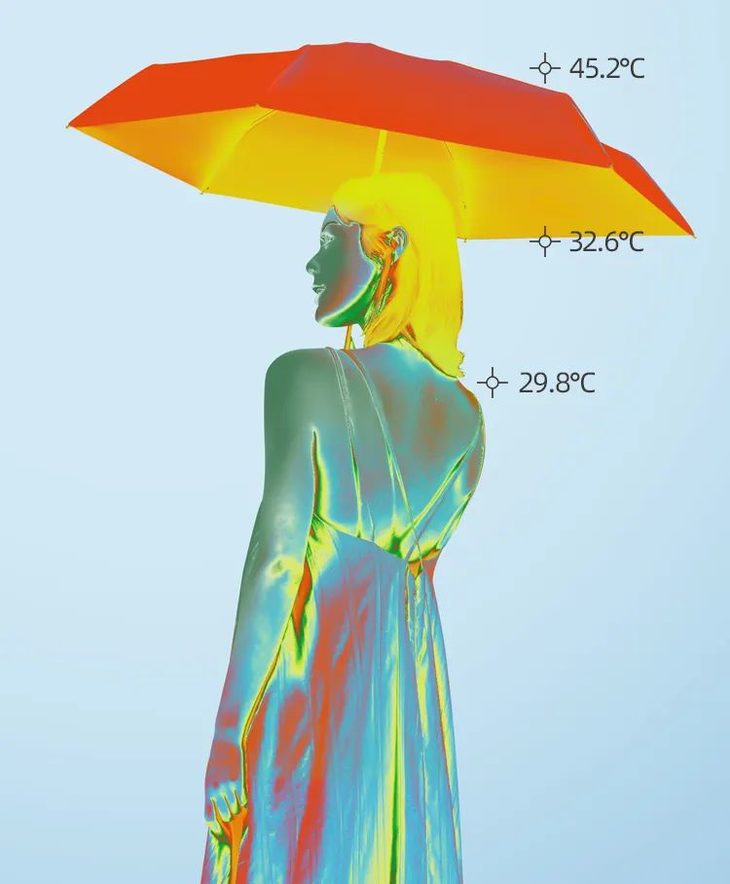 而且它的吸收热能层让伞面就像张过滤网,把大部分热量吸收后,伞下顿感清凉*!就像随身携带了一个小空调。(*测试数据来源于品牌方)
