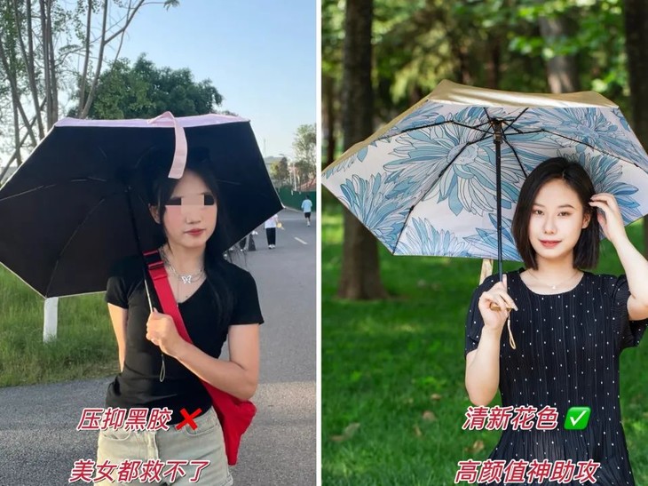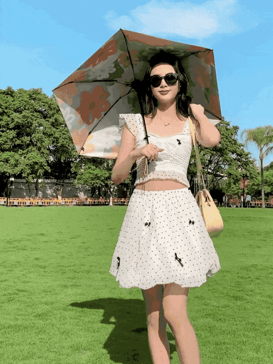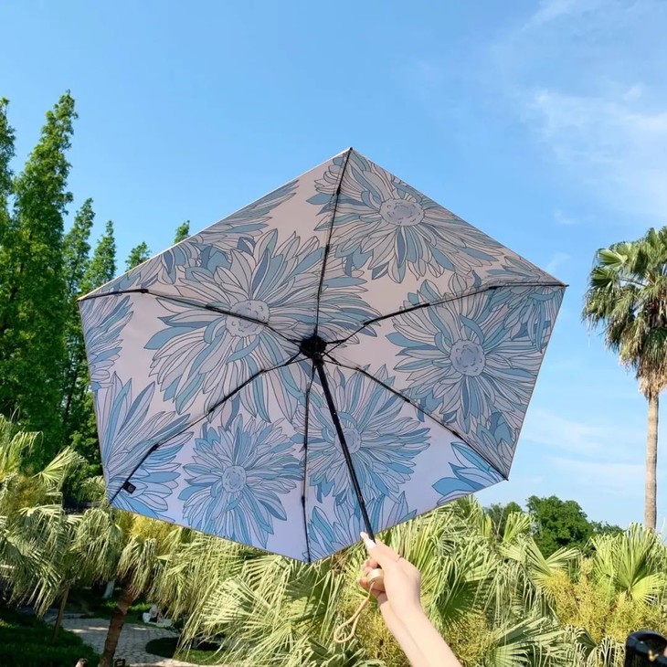 青花胜蓝:淡雅的蓝色花朵开在伞布上,瞬间给人一种清凉感,清冷气质感拿捏。