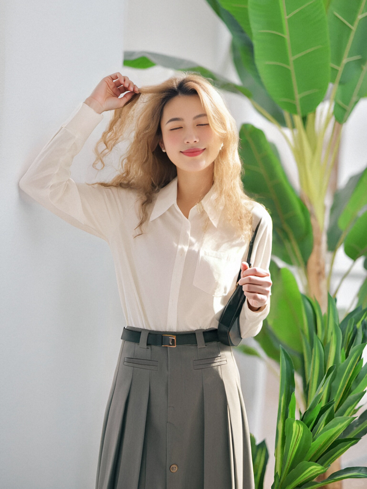 基础款 简洁米白色宽松长袖衬衫