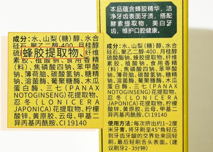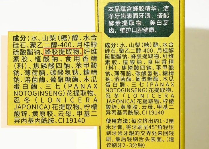还有还有,蜂小妍牙膏里面还有三七、金银花等等清热降火的植物成分。