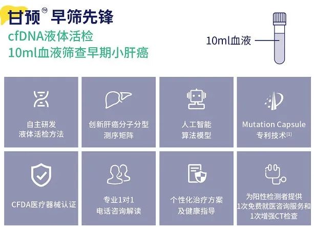 泛生子基于全球领先的cfDNA液体活检技术研发出的甘预®肝癌超早期筛查,只需要抽取10ml血液,就能发现超早期肝癌的蛛丝马迹。