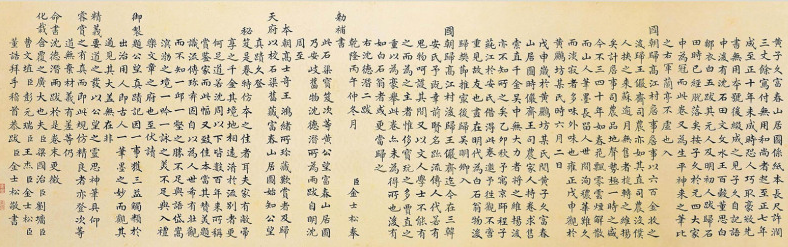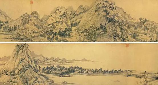 《富春山居图》所采用的是一种横卷的方式,按照人的正常视野,构造了同一水平上的山水景色,是一种从平面上不断进行延伸的构图方式。