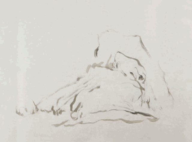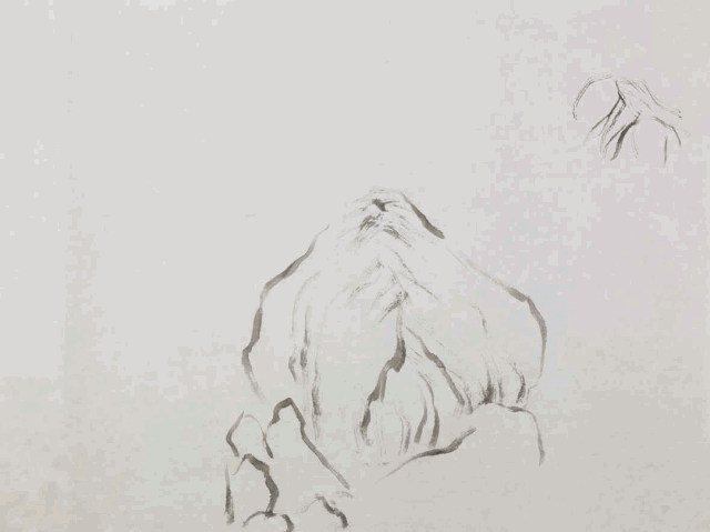 荷叶皴,顾名思义,形如荷叶的筋脉,皴笔以主石脉为中心,由上而下向两边延展。江南多雨潮湿,经雨水长期冲刷后形成了深刻坚硬的土质裂痕。这是画家由自然景物中捕捉到的又一适宜表现江南山石的皴法。