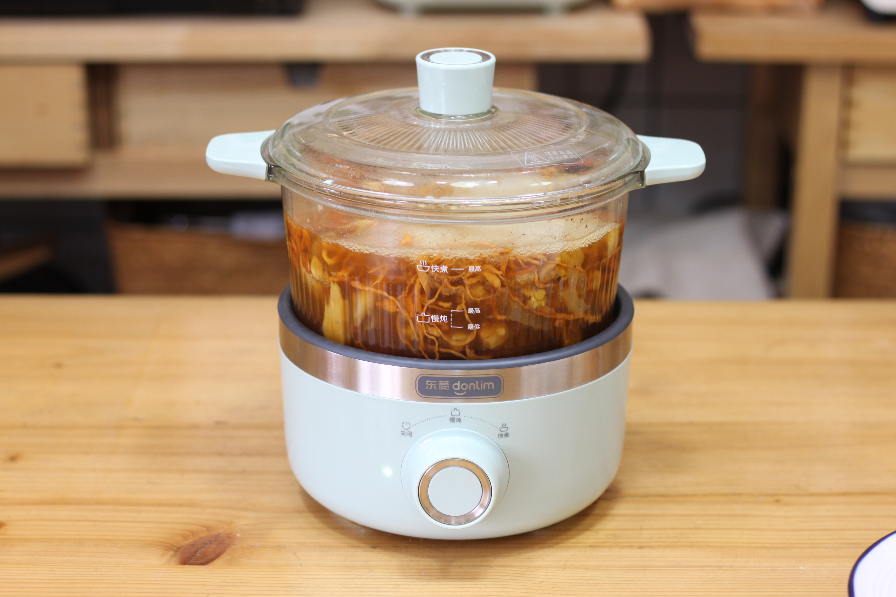 8. 炖制过程中可以从东菱养生锅的玻璃器皿中看到里面食材的状态