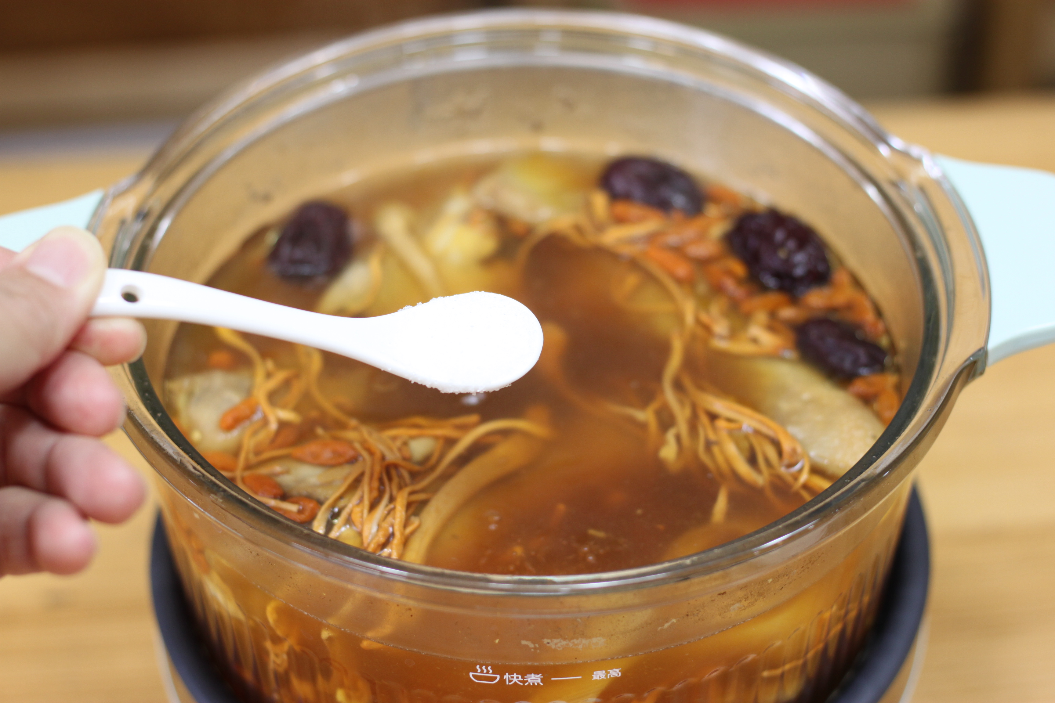 5. 放入洗净的蛹虫草