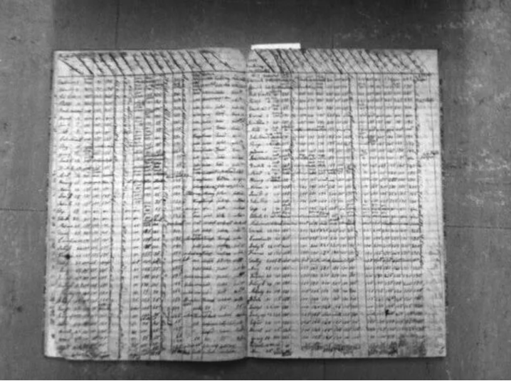 书中插图:奴隶主用棉花账簿来衡量和记录每个奴隶的工作量。这种账簿和杆秤、皮鞭一起构成了“鞭笞机器”的一部分。(1852年密西西比州沃伦县劳雷尔奴工营的采棉记录)