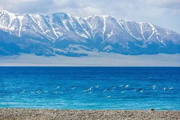 2.到达可可西里湖的时候,被眼前深蓝的湖水吸引住了,像是走进画里一样。