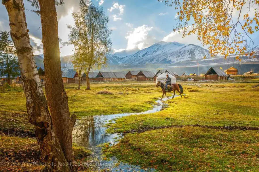 6.如果想要看日出晨雾的小伙伴们记得要早起,这时你可以看到整个村落都笼罩着一层薄雾,到禾木村全景台拍摄禾木村全景,晨光微洒在禾木村上,美轮美奂。如果喜欢骑马的小伙伴也可以在美丽峰尝试一下骑马乐趣。