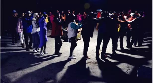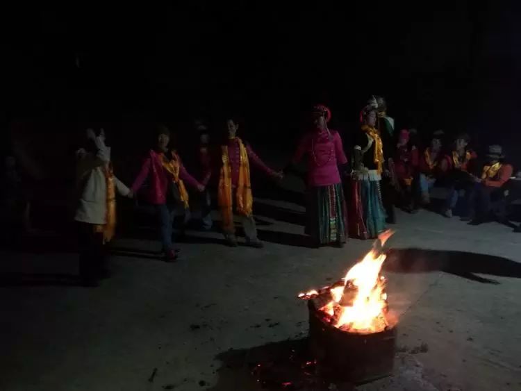 篝火映照在欢庆的人们喜悦的脸庞,