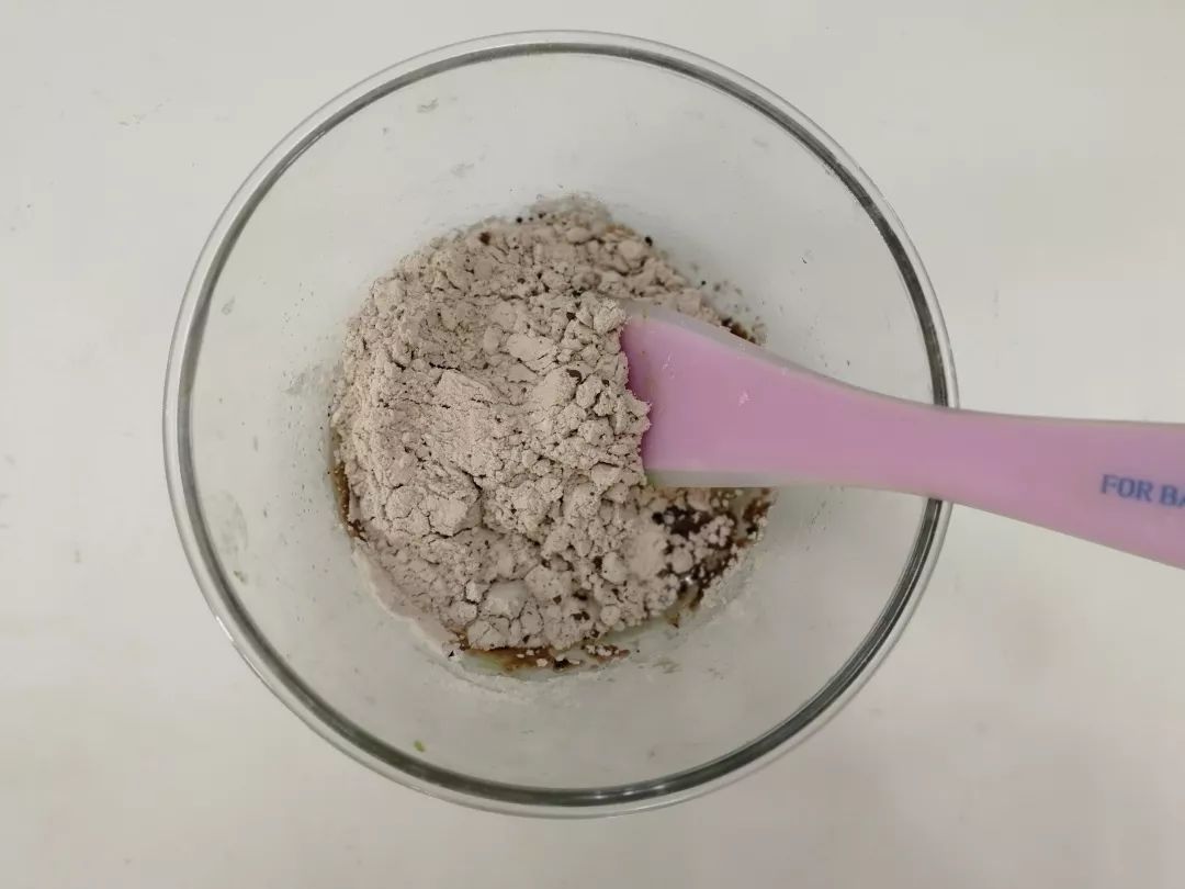 加入可可粉及面粉搅拌成团。
