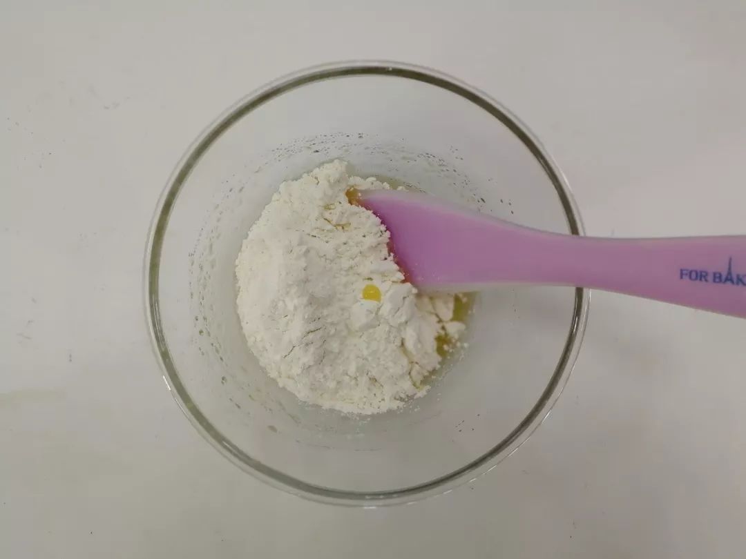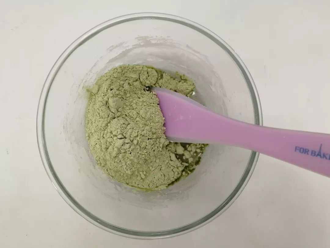 加入抹茶粉及面粉搅拌成团。