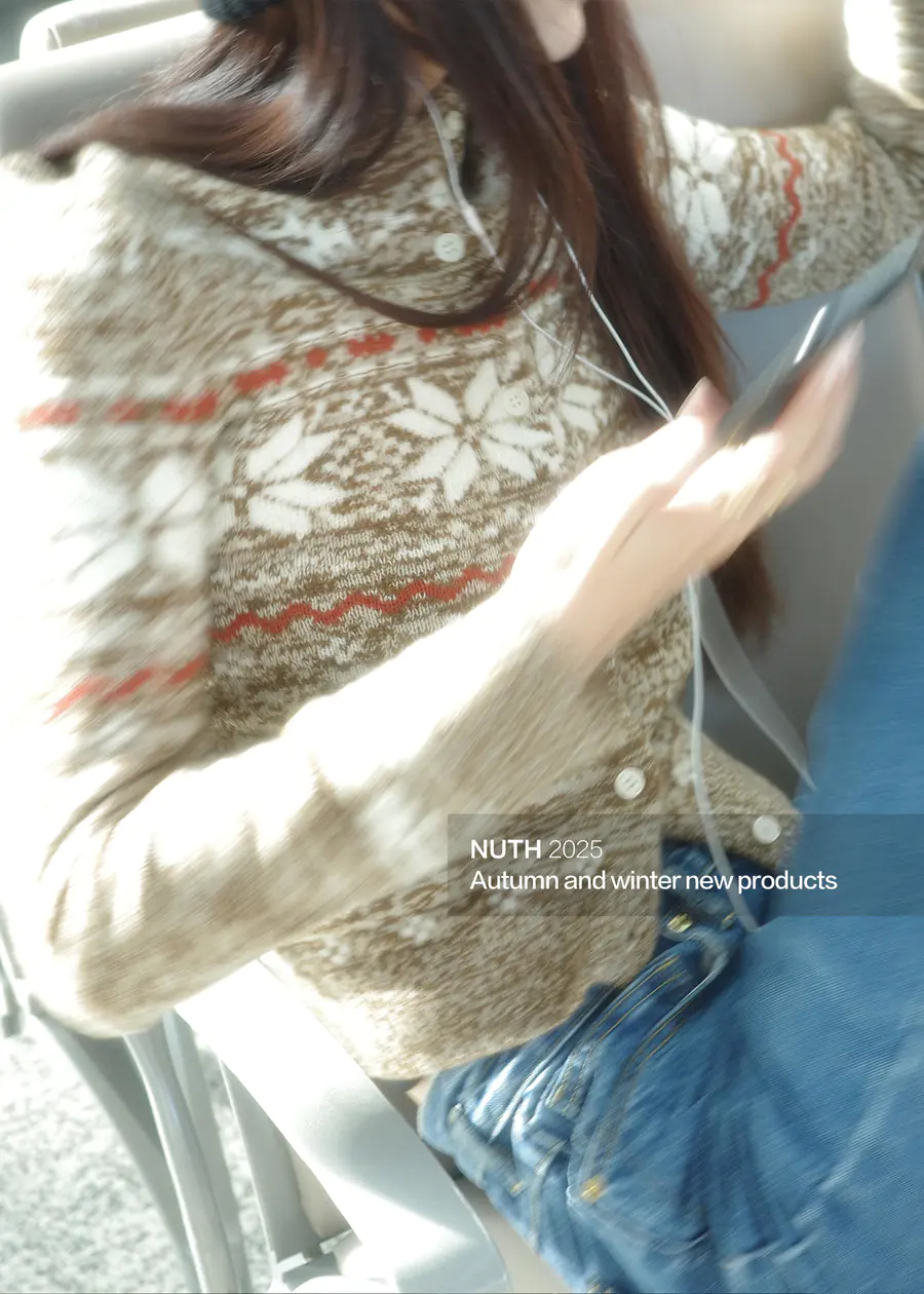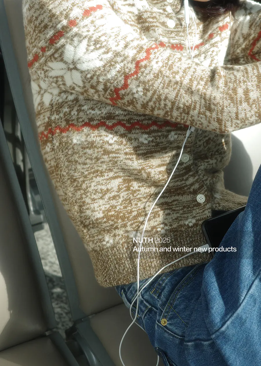 休息时刻 :费尔岛毛衣搭配牛仔,温暖与格调并存。
