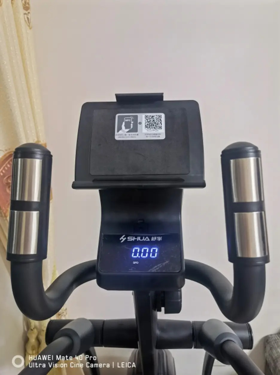 舒华A3-E智能椭圆机是我第N个华为设备,华为大家族又壮大了~智慧生活欢乐多。NFC一碰即连,连接华为运动APP,一键开启智慧运动新生活。椭圆机配置了LED表盘,运动时手握心率扶手,心率、运动时间、距离以及消耗的卡路里都会滚动显示,让运动者对身体状况及时了解,开始运动吧。