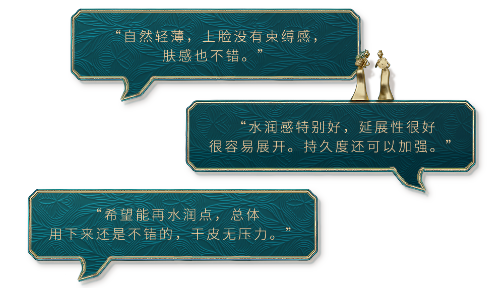 我们对粉底进行了80多轮(每轮约50人)的内部测试后,又跟进了不同肤质花伴体验官们4轮测试(每轮150人),并针对建议,反复对配方进行调整打磨。