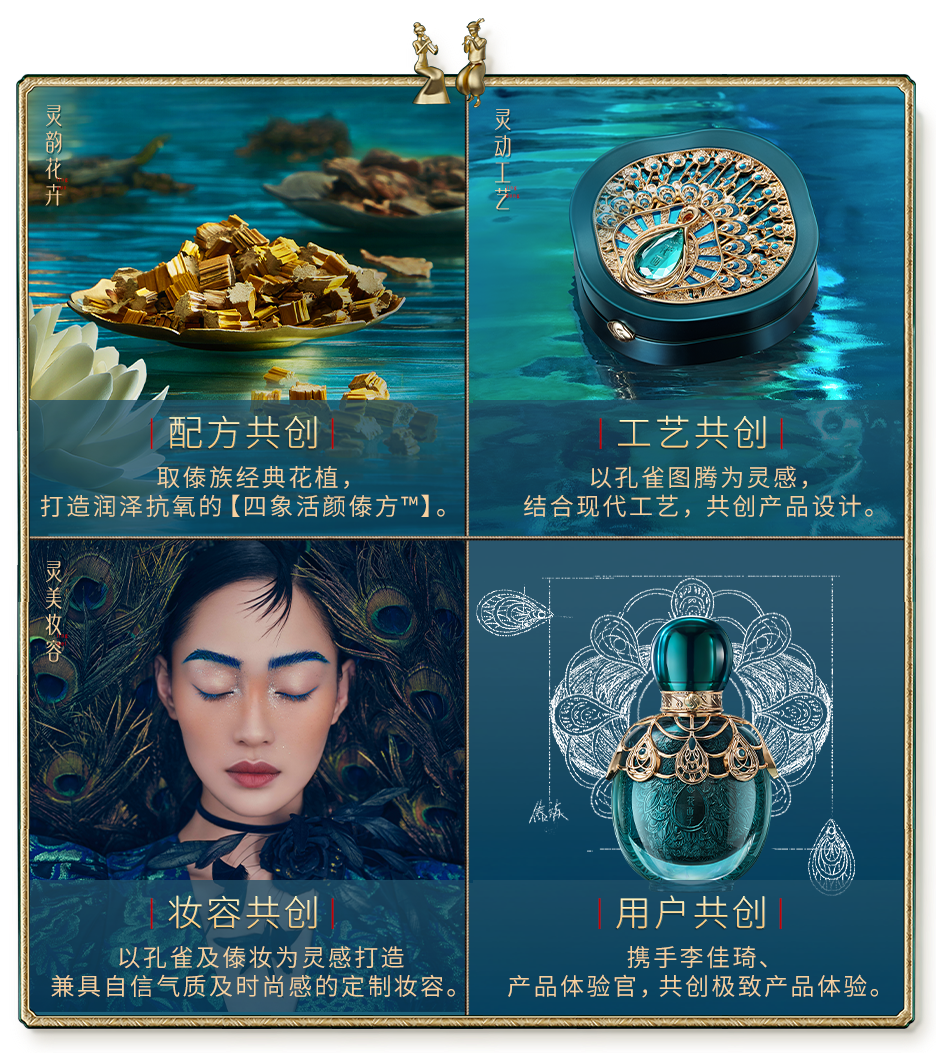 因此傣族印象系列也特别注重妆容体验,它融入了傣族包容万物的特性,希望让大家创造出更多元的美。