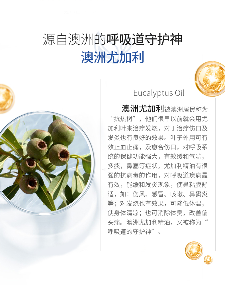 进一步研究后发现,尤加利中含有的桉油醇,还具有化解粘痰、修复鼻粘膜的作用,对于改善炎症和呼吸疾病有很大的效果!