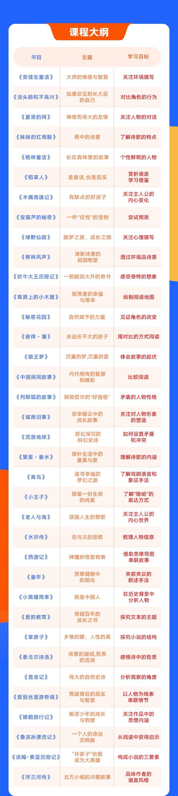课程大纲一目了然,36部,分了700多节,名著带孩子一点点精进。
