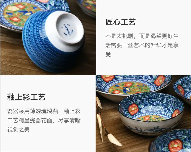 红花鸟系列陶瓷餐具十件套,古风设计,溜边工艺,薄透琉璃釉,釉上彩呈现瓷器花面,尽享清晰视觉之美。美味佳肴还需心仪餐具,给挚爱的家人做拿手年夜饭,请配上新碗,新心意。