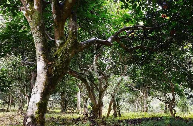 这里古木参天,物种丰富,原始、自然的生态环境,给茶树生长提供了最有利的条件。山上的古茶树大部分生长在原始丛林之中,与高大常绿阔叶林交错生长,古茶林为单株,古茶树直径多在10-30厘米之间,少数在30-50厘米之间。