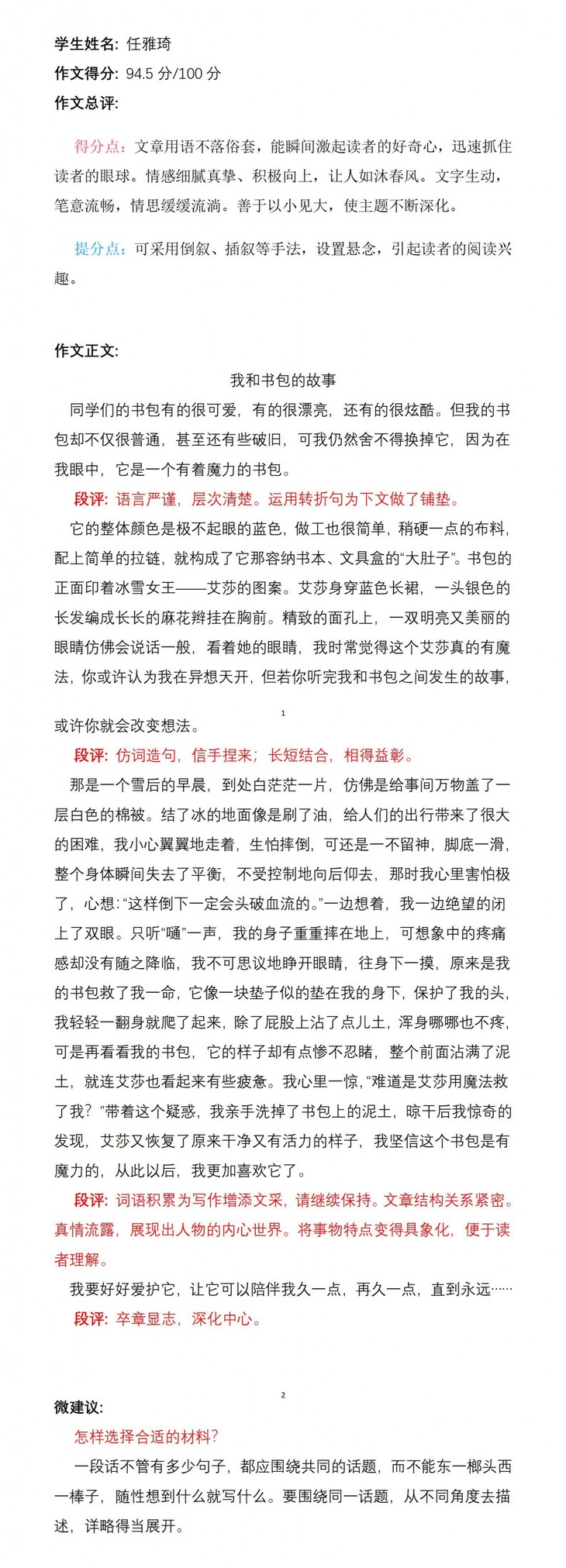 这是孩子第一次参加作文比赛,所以在写作的过程中,反复斟酌,反复修改,对她认真的态度,令我刮目相看。自从老师倡导孩子多读书以来,孩子逐渐养成了读书的习惯。兴趣是最好的老师,希望孩子能在写作的乐趣中找到自信,在对写作的热情中体验学习生活的快乐!