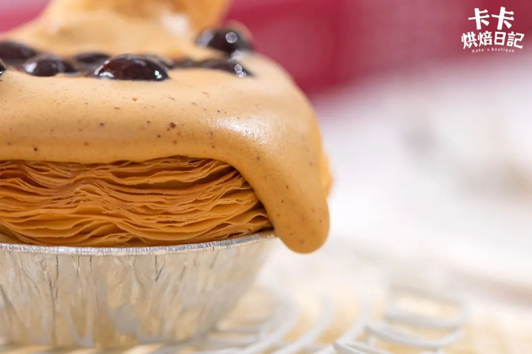 这款挞的核心,在于表面浓郁细滑的奶茶酱,做好了,整个挞的味道就不会差!
