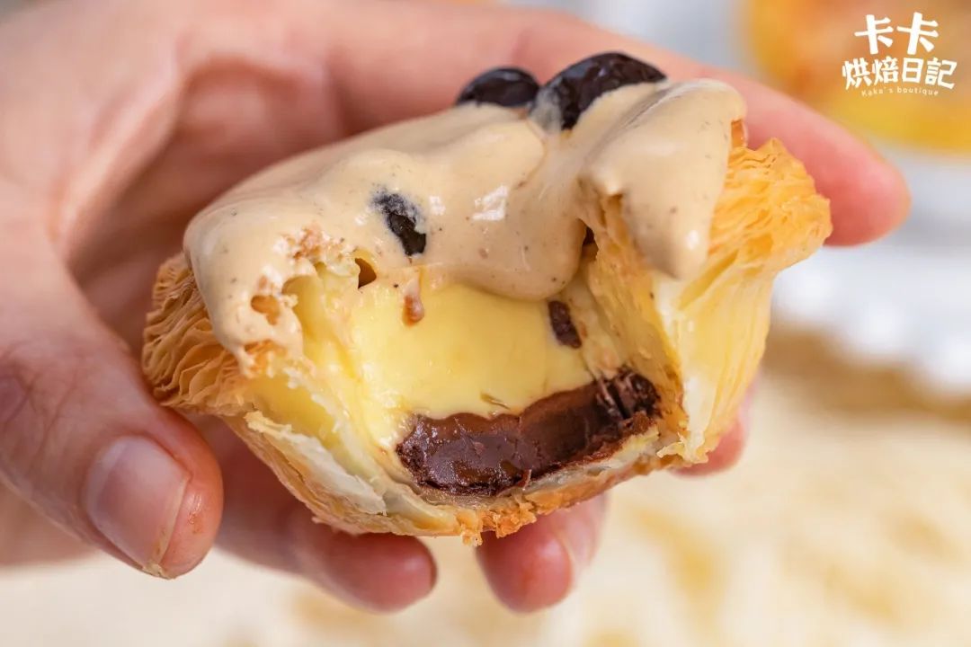 层层起酥的挞皮,一咬就能听到咔嚓脆响,还来不及收拾酥皮屑,浓郁的红茶卡仕达酱就涌进了口腔。