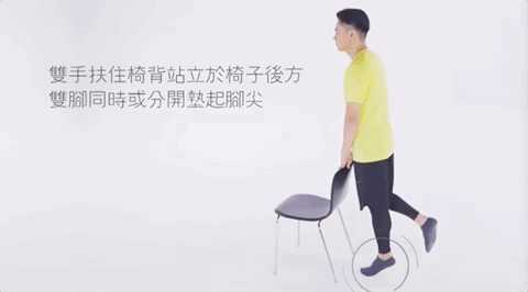 找到一面墙或柱子(或者是一把椅子一张桌子),手扶稳,身体垂直与地面,用脚尖站立,慢慢提起、放下脚跟。可以轻松完成后,可背上背包或者单脚进行提足跟锻炼。