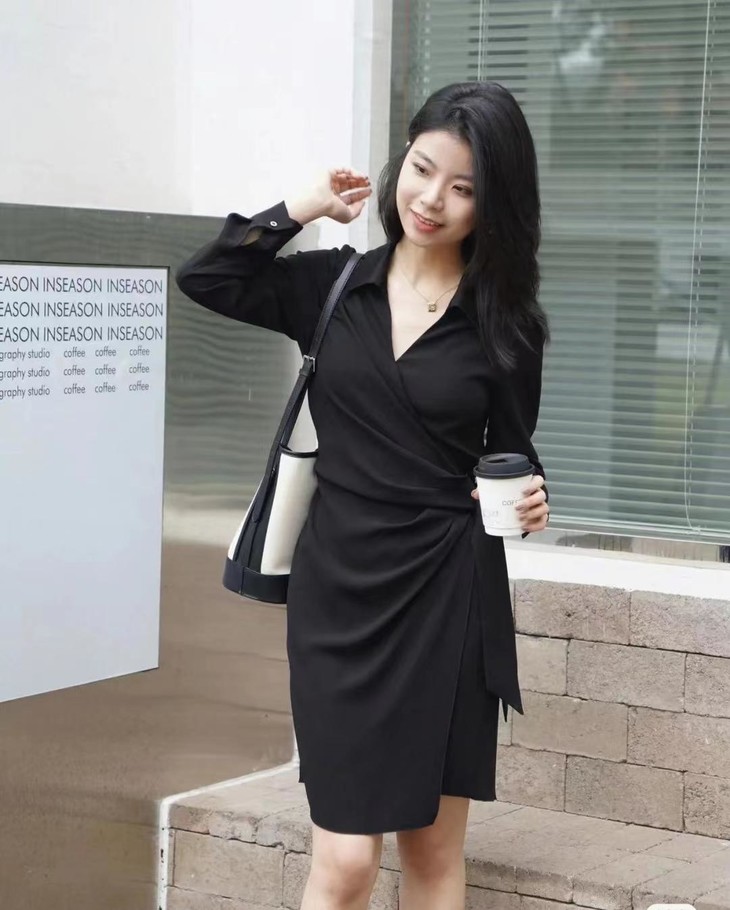 日本进口三醋酸面料,真丝般的柔滑质感,搭配一片式门襟,上身带来优雅与层次感,同时结合V领+腰身绑带,悄悄提升比例。