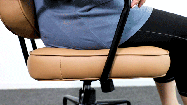 不用刻意调节高矮角度,就能找到轻松又舒适的坐姿,即坐即躺,超放松!还专门做了软包海绵扶手,随时能给手肘一个支撑,工作累了往上一摊,手臂连带着双肩都能得到放松~一般椅子用的海绵都是拼接式边角料,而我们永艺休闲椅,用的是整块原切海绵,可以说非常用心了!再来说说这款椅子用的皮面——PU皮,一种超耐用的人造合成仿真皮皮料。这种皮面,在成本上其实和真皮相差不大,而且摸起来手感一样好。之所以选用PU皮,主要还是因为它没有真皮的“娇气”,耐脏又耐用,非常好打理!