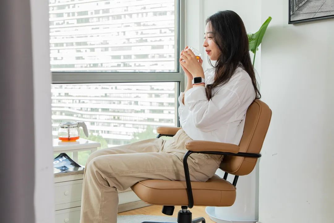 试过永艺这边休闲椅后,不得不感慨一句太舒服了!简直比坐沙发还要舒服!!这主要还是得益于这把休闲椅的人工体学设计和扎实高质量的用材。能够主动填补脊柱曲线,支撑腰背、臀部…减小坐姿压力和久坐疲惫感。所谓人体工学,在本质上就是使椅子的使用方式尽量适合人体的自然形态,这样就可以让人在工作时,身体和精神不需要任何主动适应,从而尽量减少使用工具造成的疲劳。 像椅背处的倾斜设计,贴合身形,均匀分散背部压力,久坐也感觉不到累!还有19°的后仰设计,久坐后可以随时换个姿势慢摇放松一下,腰背都能得到hen好的支撑,nice~自适应底盘更是优秀,不管是180斤的男孩子,还是90斤的女孩子坐上都合适。