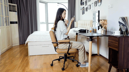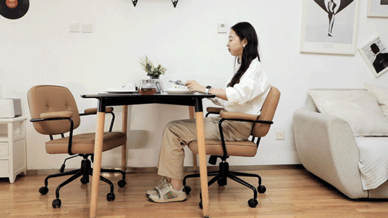 高品质!安全耐用好打理说实话,对于使用能旋转的椅子我内心还是比较忐忑的,新闻就曾报道过“气压升降椅爆炸事件”,吓人。永艺这款休闲椅也考虑到这一点,气杆用的是SGC认证3级气杆,防爆!安全!还有特别设计的静音万向滚轮,各种滑动畅通无阻力,更不会出现划伤地板的情况。