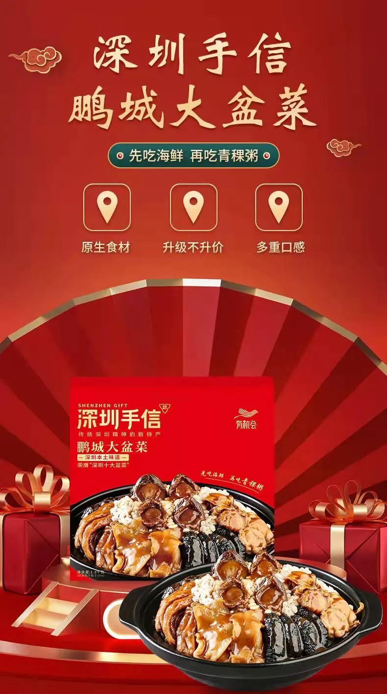 当然,对于现代人,没有太多的时间去做盆菜,深圳手信鹏城大盆菜完美解决了这个问题。食材选择广而精,从各地广泛精选当地原生优质食材,释放深圳本土味道。汤汁由秘制红烧精心熬制而成,解锁出蕴藏在各种食材中的自然原味精髓。
