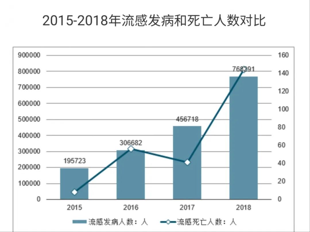 流感病毒可不等于普通感冒,美国的病情就给我们敲响了警钟,流感病毒是所有人群普遍易感的,非常容易引起爆发性流行,中国近年来流感人数也在增长,城市人口的密集增加了流感病毒的传播感染人数,