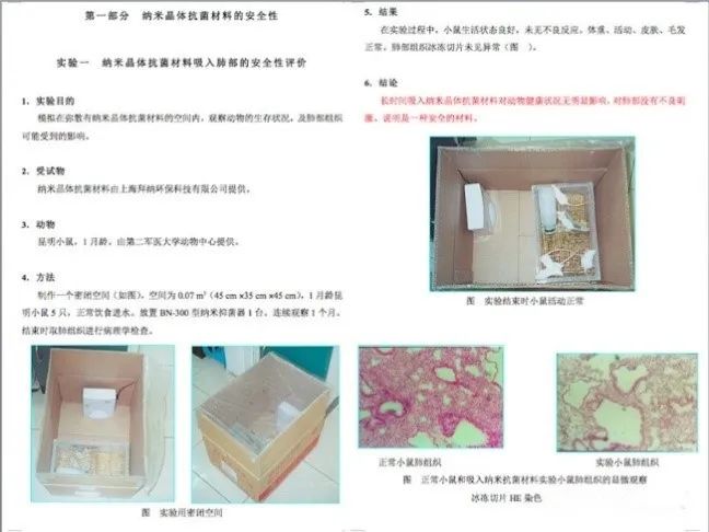 实验结论:长时间吸入纳米晶体抗菌材料对动物健康状况无明显影响,对肺部没有不良刺激。说明这是一种安全的材料。