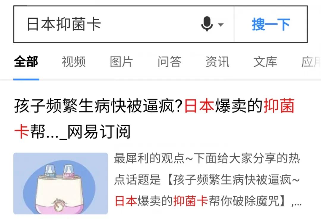 在流感病毒面前,小孩子是高感染人群,在日本很多妈妈为了提高小孩子抵抗力而使用抑菌卡,抑菌卡的原理是在空气中杀灭病毒,防止孩子感染到流感病毒,这种抑菌卡现在在日本已经是被抢疯了,很多药店都被卖断货了。