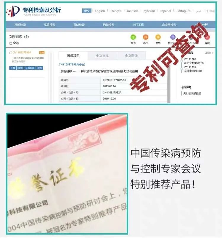 这款抑菌香片是通过沉香纳米香疗技术将药材研磨至微米级,释放到空气中达到抑菌作用。这项技术已得到了国家的专利号,也获得了多项好评推荐,堪称“国货之光”.