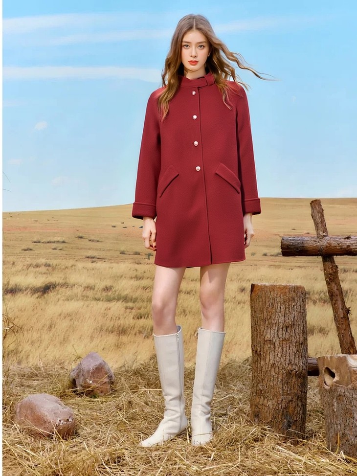 法式优雅红色双面呢外套