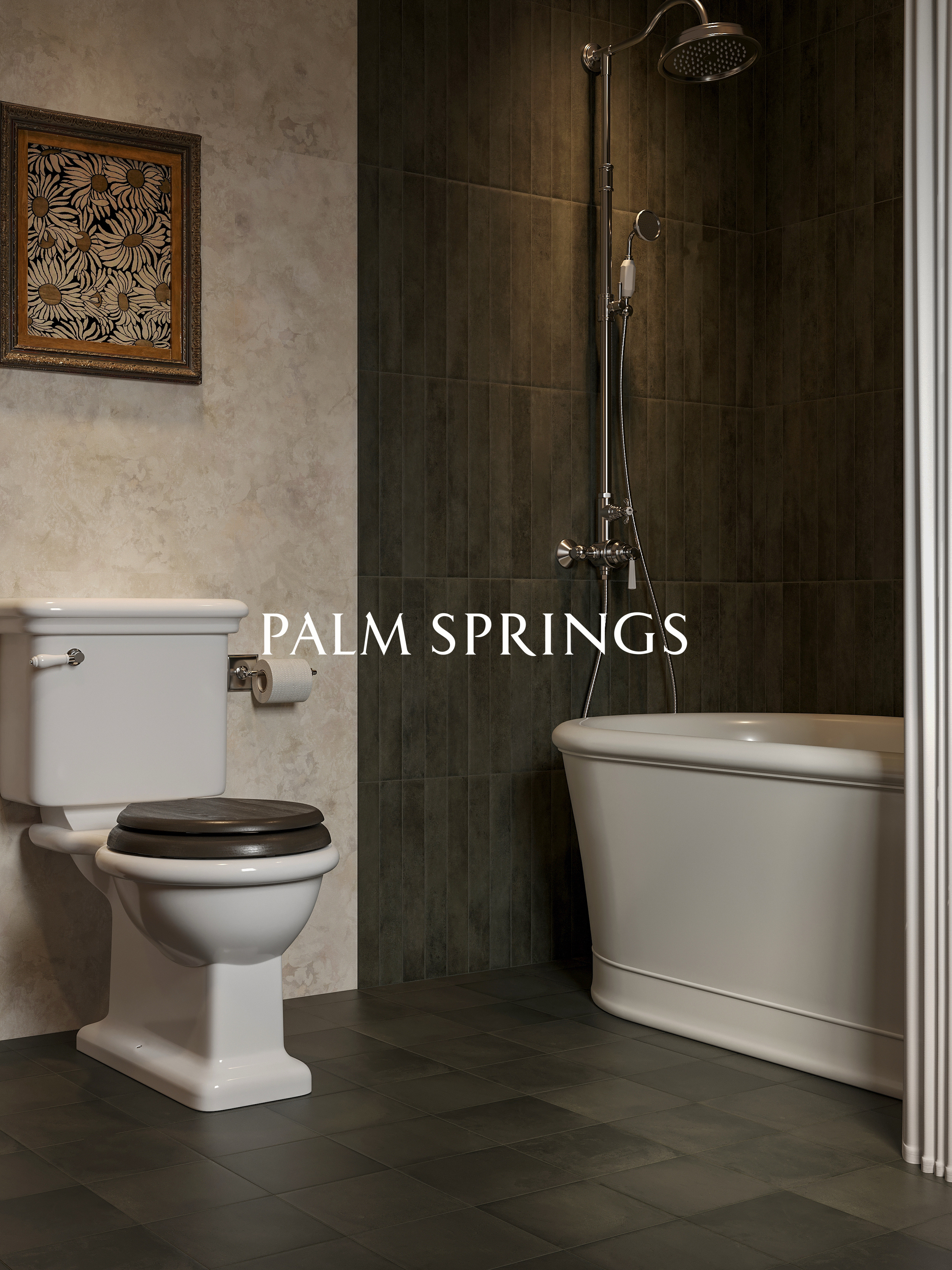 ▪️ 黑色哑光马桶盖+黄铜花洒|白色浴缸vs深灰地砖
