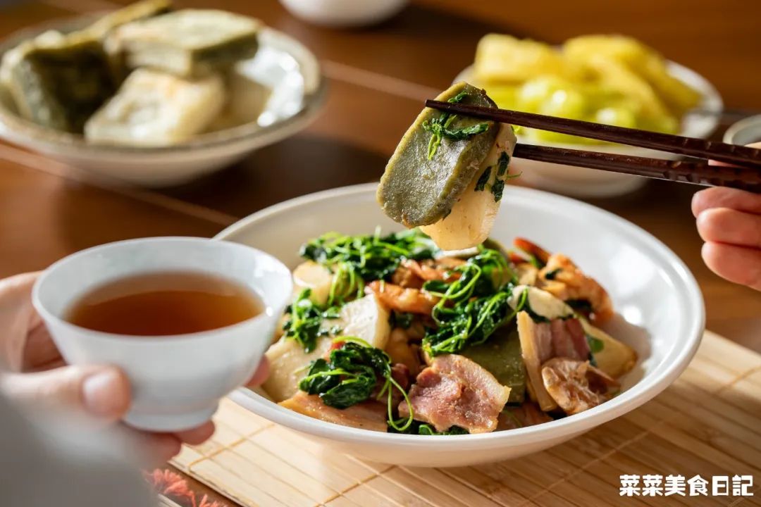 煮过之后的年糕,外层微微糊化,滑溜溜的,接近QQ糖那种有嚼劲儿的弹糯质地,咬进去充满韧劲、米香。雪菜细细撒进年糕汤,酸汪汪、鲜灵灵、脆生生,咬到时整个味蕾为之一振,汤也变得酸香开胃。你们还可以试试雪菜春笋肉丝年糕汤、雪菜毛豆肉丝年糕汤,都是当地经典好吃的搭配。更多好吃的年糕菜谱,我之前做过很多,你们回去一道道解锁吧~年糕素有“岁岁节节高”的寓意,而且艾草有助于养身。不管是自食还是送亲朋好友,都是好意头又大有裨益的。希望这份一期一会的春味,能够让你以另一个方式拥抱春天🌿。