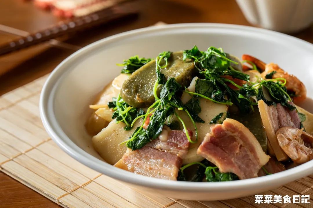 食材准备:年糕2条、里脊100g、咸肉50g、虾仁100g、豆干100g、春笋/茭白100g、草头150g、生抽1大勺、黄酒1大勺、盐1小勺、糖1/2小勺1. 里脊和虾仁加1小勺生抽、1/2小勺盐腌渍,年糕切厚片,咸肉切片加温水浸泡去咸味;3. 再加入豆干、茭白、1大勺黄酒、1小勺生抽、1/2小勺盐糖翻炒均匀4. 加入半碗清水,沸腾后放入年糕煮3分钟,起锅前放入草头翻炒均匀。推荐你们草头可以多加一点,这样每片年糕上都能裹满。咬一口,浓烈的山野气息在嘴里噗噗噗地炸开,有着散不去的清新味道。草头的清香,蔬菜的纤维感加上年糕的软糯,是江南春天的恩物啊~还有江浙家常菜:荠菜炒年糕,每年春天我的胃挂念它百转千回。蛰伏了一冬的荠菜,是春日宁可不吃肉,也要抓紧吃的“春菜第一鲜”!