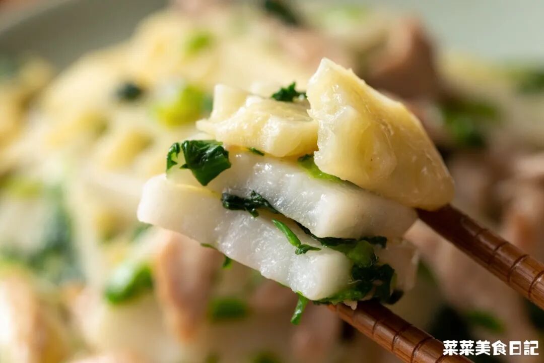 年糕、雪菜、里脊、白菜、香菇一锅炖,凑足清鲜、荤鲜、咸鲜,那个汤鲜得舌头都要化了!