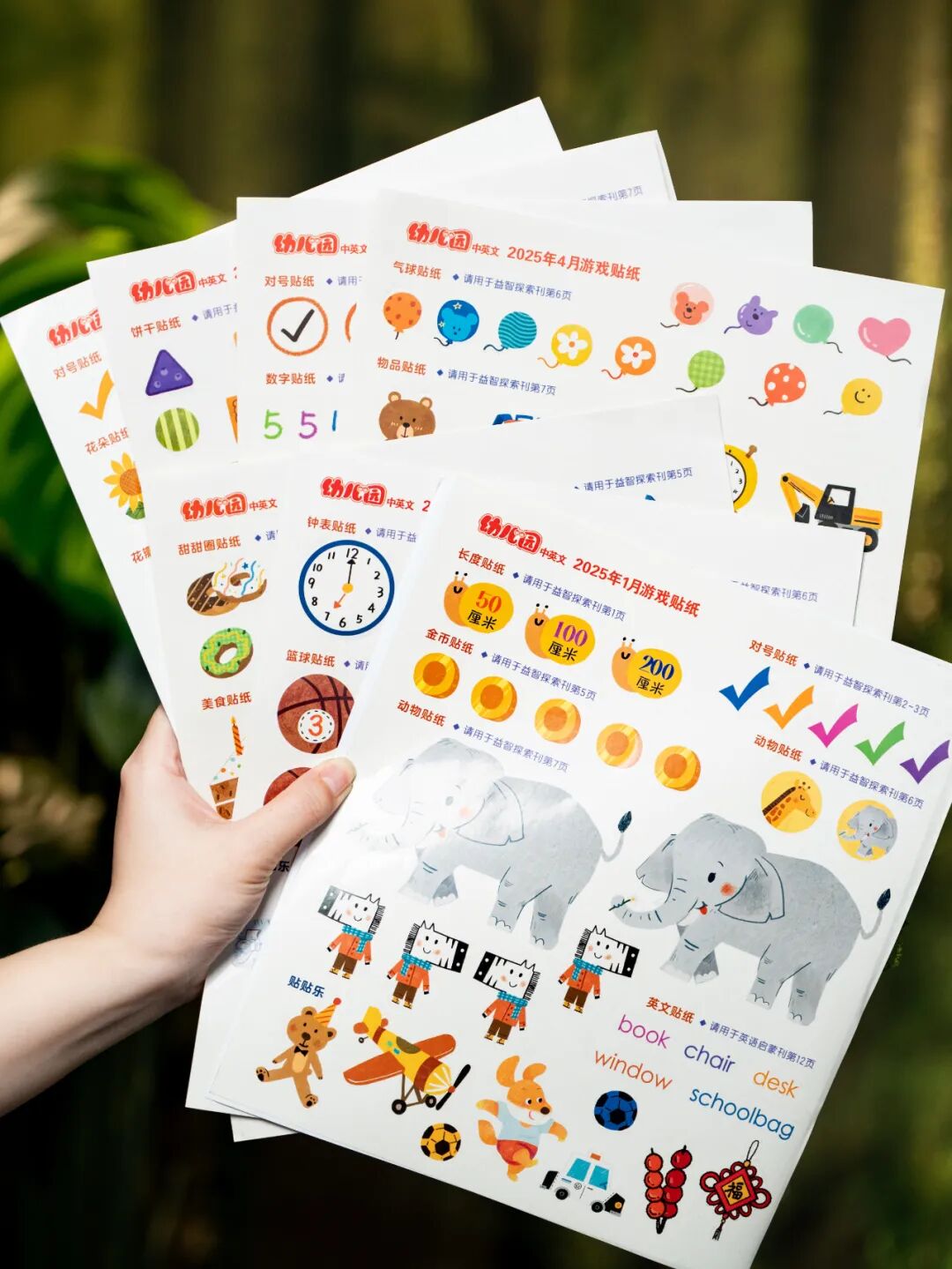 赠礼212张互动游戏贴纸(每月1张),对应每一期绘本刊、益智刊、英语刊