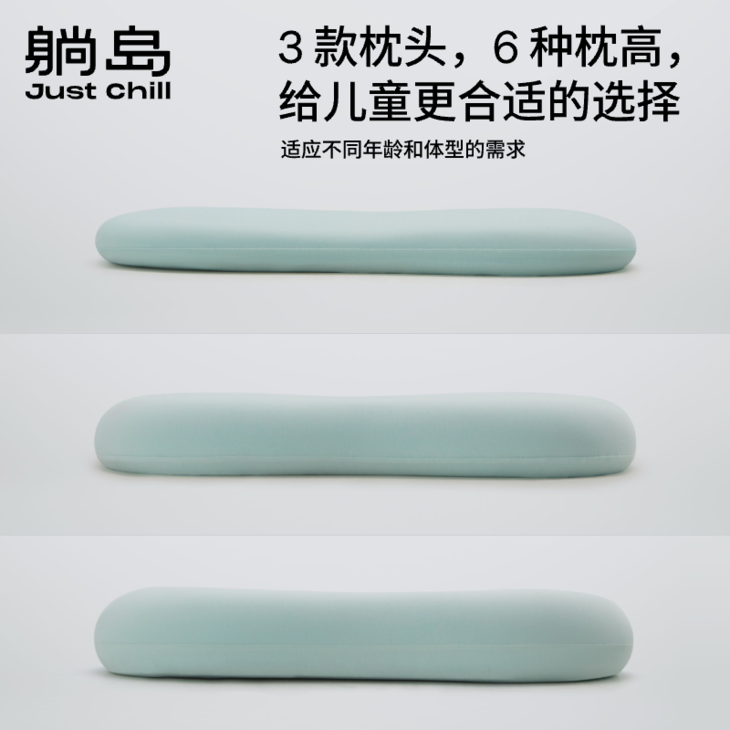 3款枕头,6种枕高,适应不同年龄和体型的需求,给儿童更合适的选择