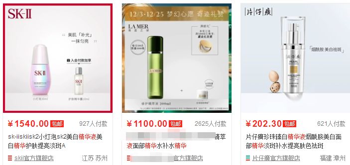 网上查几乎同功效的SK-II,一瓶居然1540元!片仔癀官方旗舰店也报出活动价202.3元。
