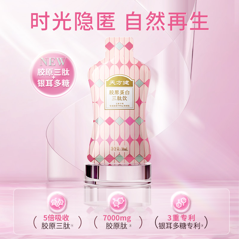 天方健胶原蛋白三肽饮,每袋富含7000mg胶原蛋白肽,高含量+高吸收,助你打破“皱”语!