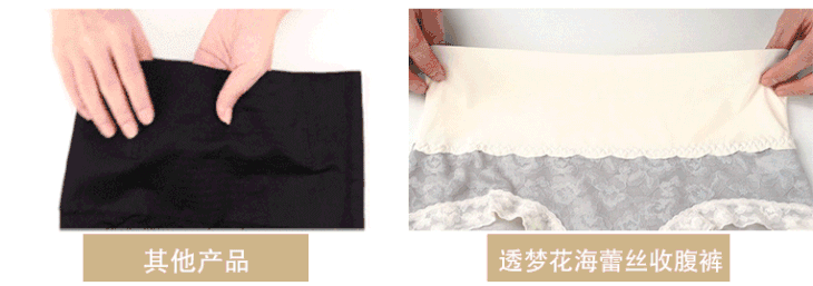 而这款,整件没有一个硬块,而是靠它的高腰工艺和蕾丝增压,达到瘦腰瘦肚子的效果~