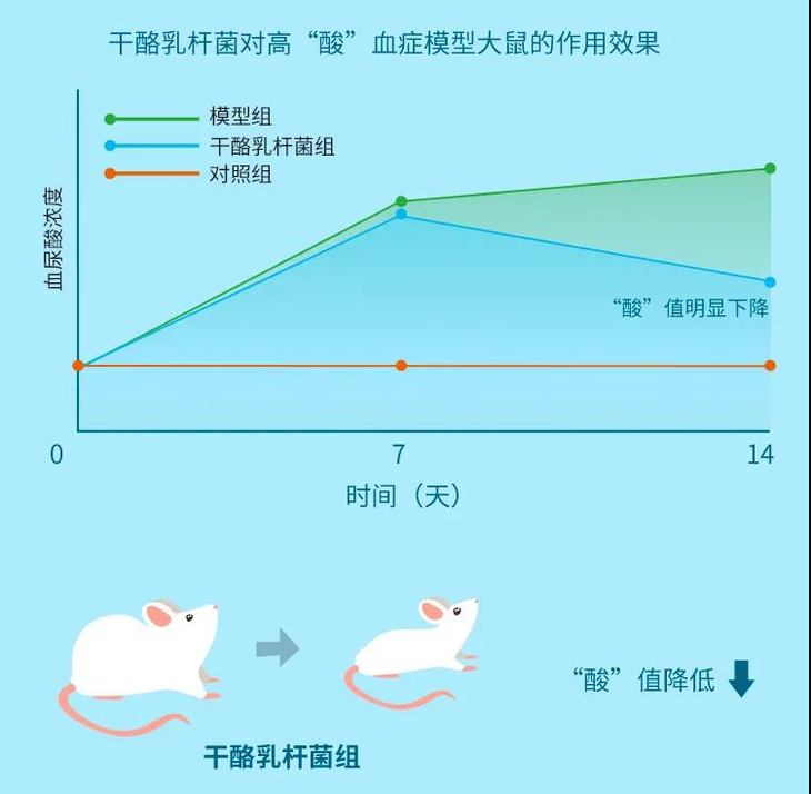 我们选择了一株通过重重严筛的干酪乳杆菌,经过实验分析,这株益生菌在肠道“安营扎寨”后,非常热衷于吸收食物分解、肠道中代谢后产生的“尿酸原料”,加工成不影响人体健康的物质后排出体外,从而减少“尿酸池”的新增。