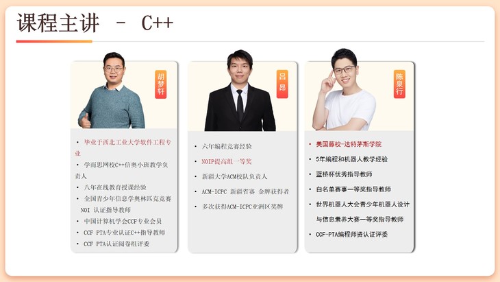 C++老师也是全员专业C++指导老师,AMC、CCF等专业编程机构认可的大赛知道教师、评委